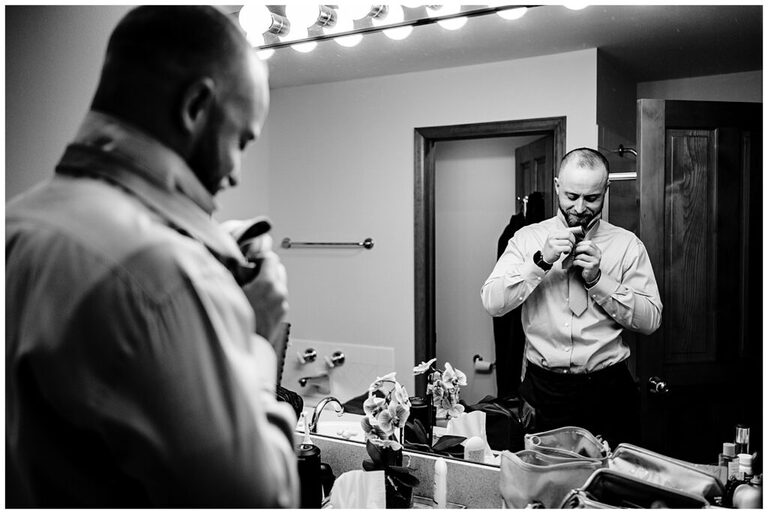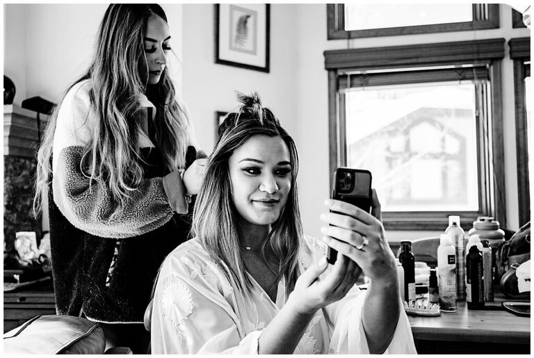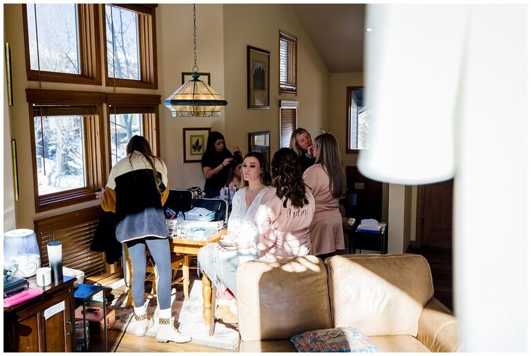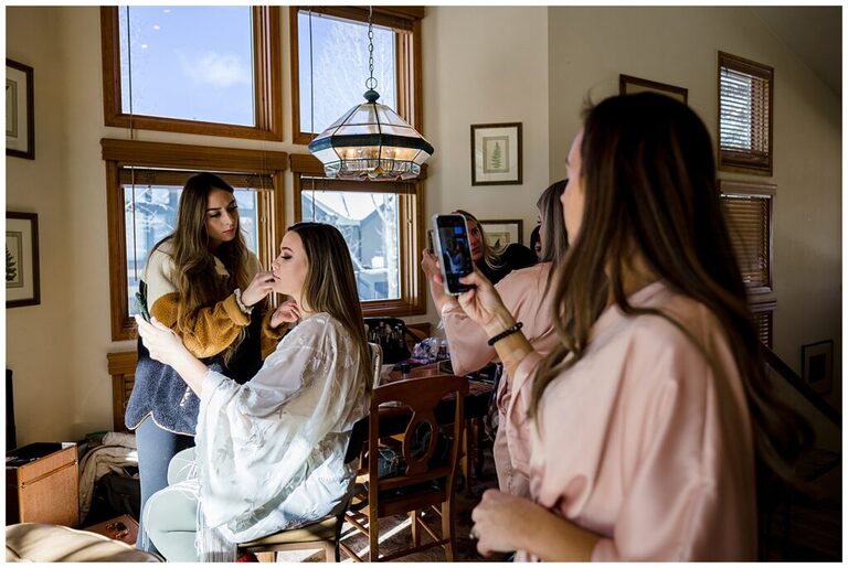 Kelly and Jacob both got ready surrounded by their family and friends in AirBnBs located just a few minutes from their venue. One of my favorite parts about larger getting ready rooms and having all your people join you during that time is the ability to capture some really great storytelling moments. I’m sure that I’ve said it at every wedding that I’ve photographed – but the best way to get amazing (and truly candid) photographs is the “I’m not here” mantra. Just pretend I’m not shoving a giant camera into your face, starting when you’re in your pajamas ;). But in all seriousness, enjoy your time getting ready with your people – whomever they may be. Take photos of one another, laugh, help eachother get dressed. It’s some great time spent with one another.