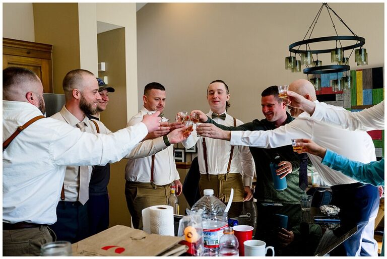 After some photos of the two of them and with the bridal party, we headed down the hill and to the Lodge to meet the groomsmen and family for some portraits.