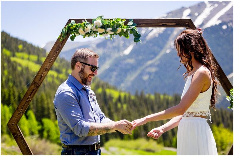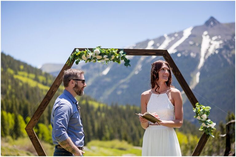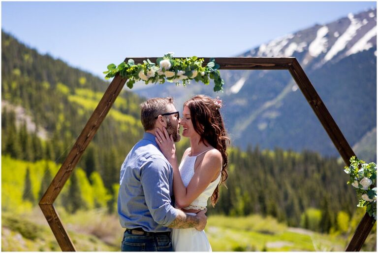 While their family and friends – who happen to be engineers – set up their stunning Octagon arch that Ethan handmade, we all headed in our Jeeps as high as the roads would let us go for some portraits.  Rikki donned some Chacos with her dress – the perfect mountain combination.  However, when we had to walk across a snow bank I’m sure her poor feet were freezing.