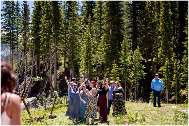 After some time in the upper basin, we headed back down below Twin Falls for their intimate ceremony.  Family and friends gave heartfelt toasts to the newlyweds while Cirque Mountain and Potosi Peak boomed in the background.