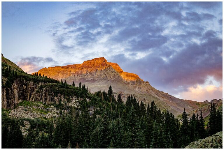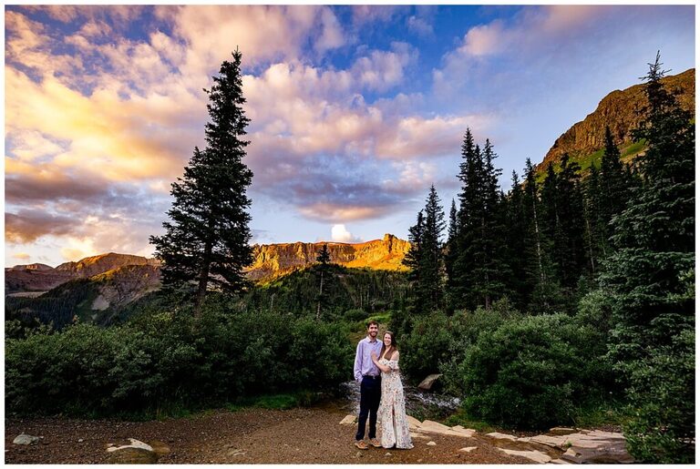After hiking Mt. Sneffels a few years back, Jessica and Stephan decided that a sunrise session in the basin just beneath the infamous 14,000′ peak would be perfect for their vision.
